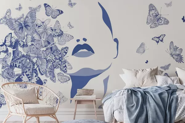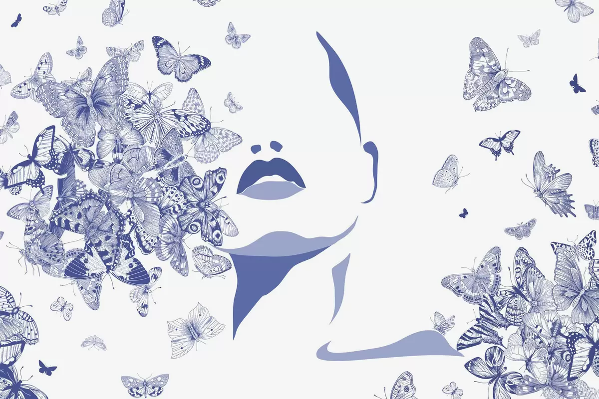 Τοιχογραφίες Σιλουέτα ενός προσώπου ανάμεσα σε πεταλούδες Nr. w04778v1