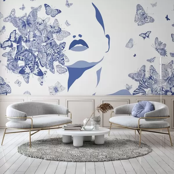 Τοιχογραφίες Σιλουέτα ενός προσώπου ανάμεσα σε πεταλούδες Nr. w04778v1