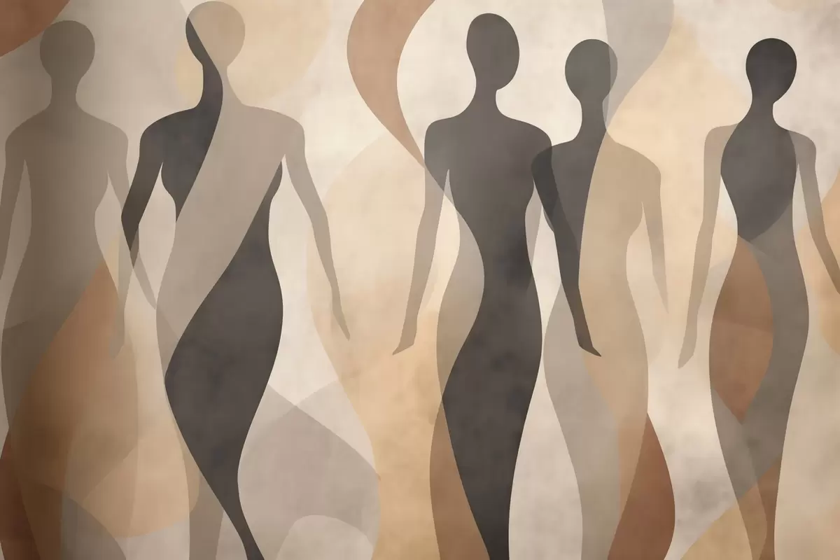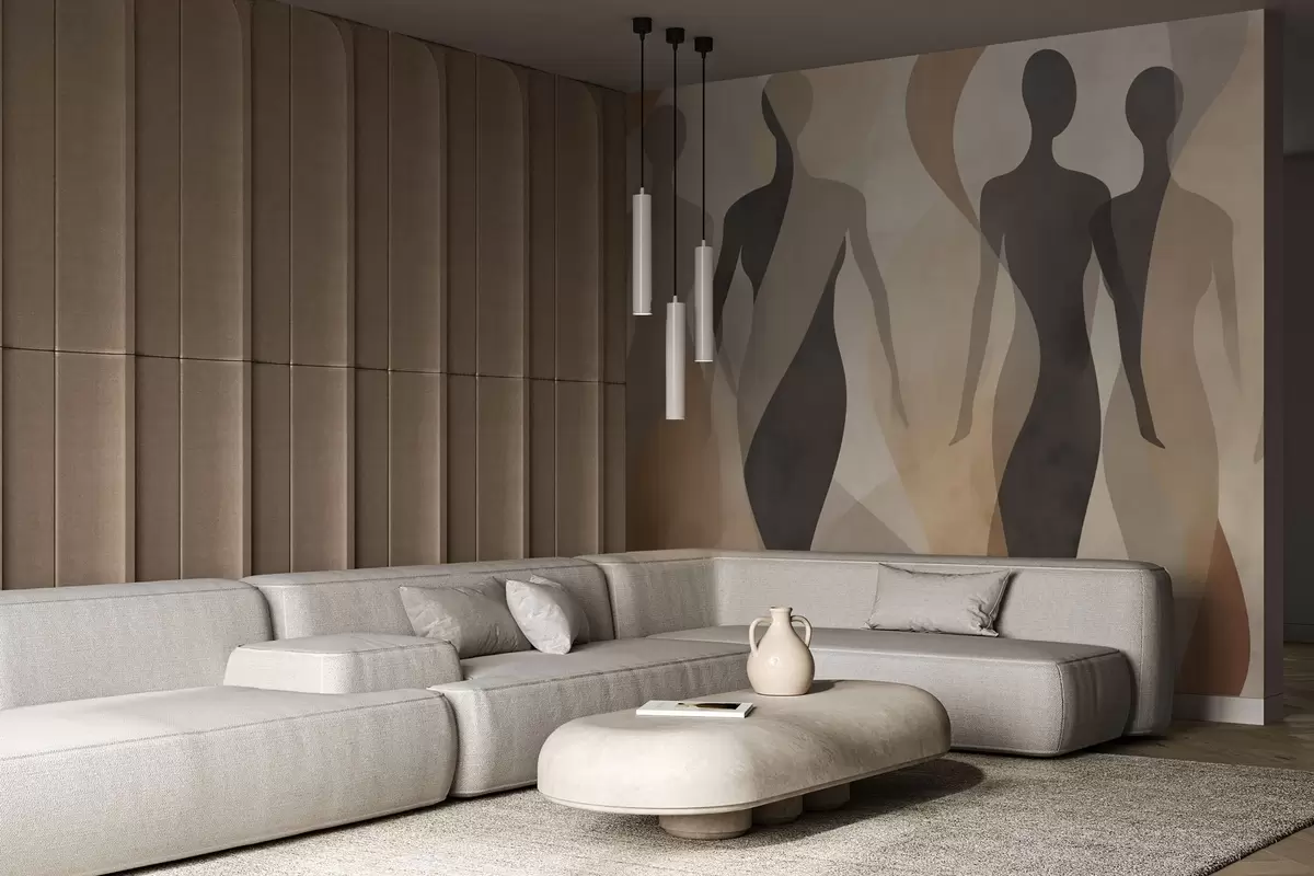 Τοιχογραφίες Σιλουέτες και απαλά κύματα σε ζεστούς μπεζ-γκρι τόνους Nr. w04787