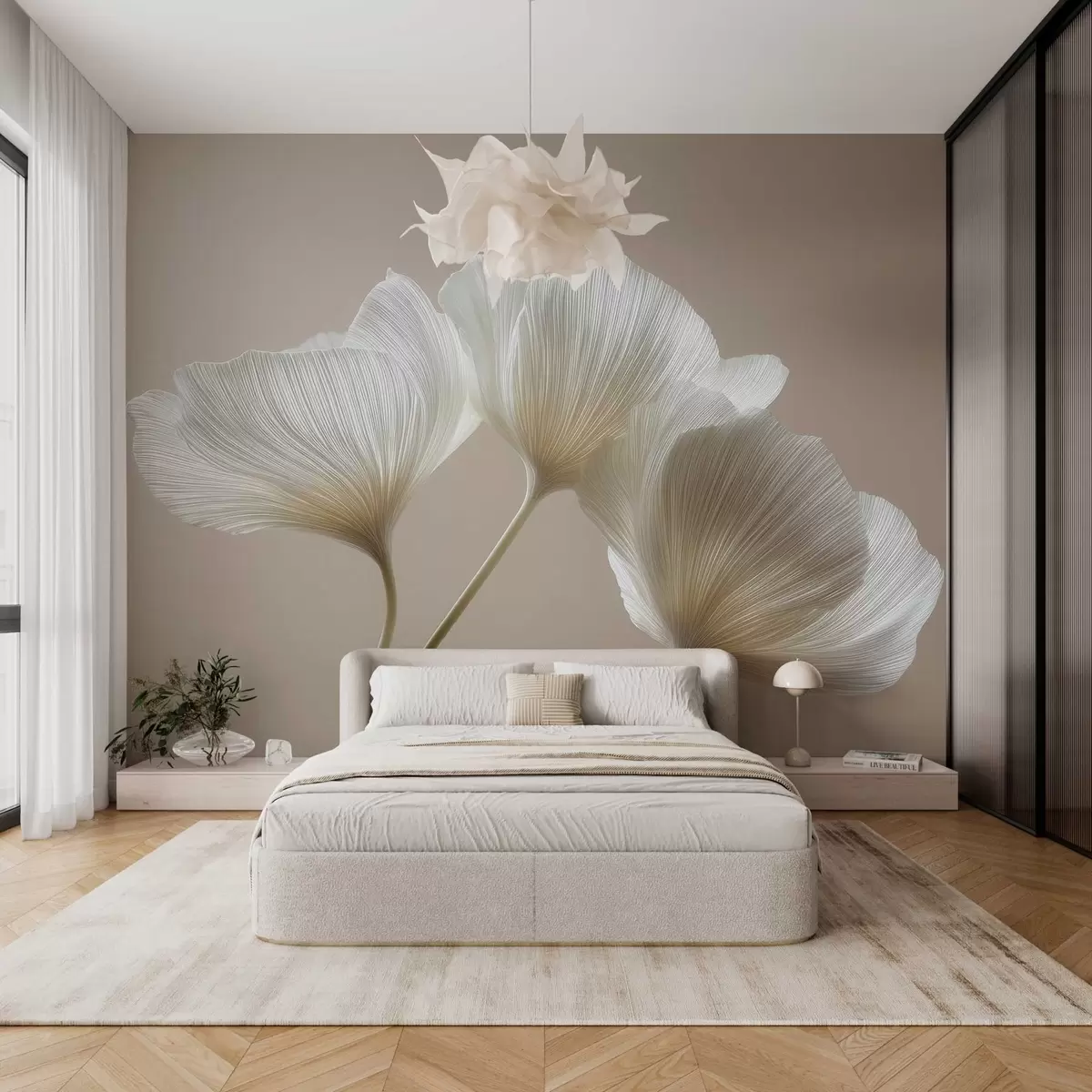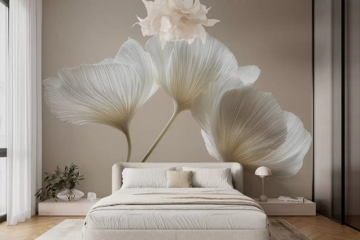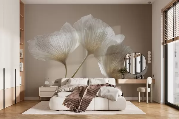 Τοιχογραφίες τρία ευαίσθητα λουλούδια σε μπεζ φόντο Nr. w04810