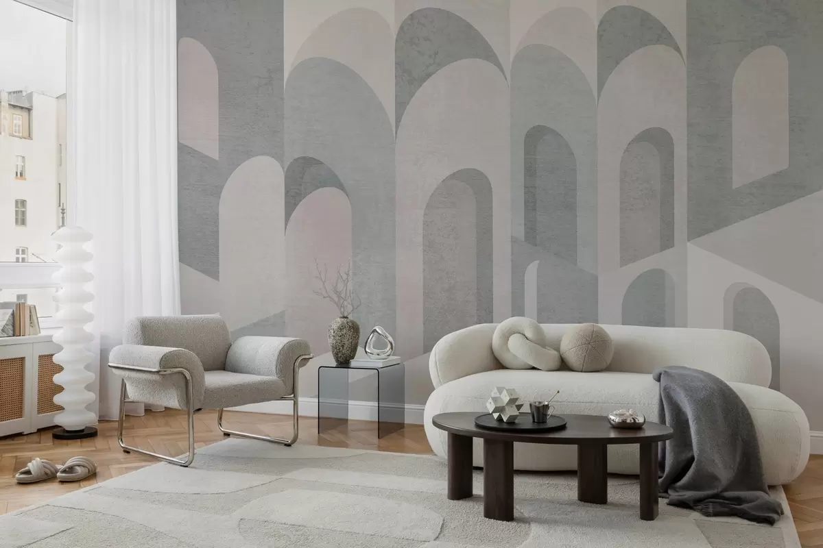 Τοιχογραφίες αστικές μεταμορφώσεις της αψίδας σε αποχρώσεις του γκρι Nr. w04812