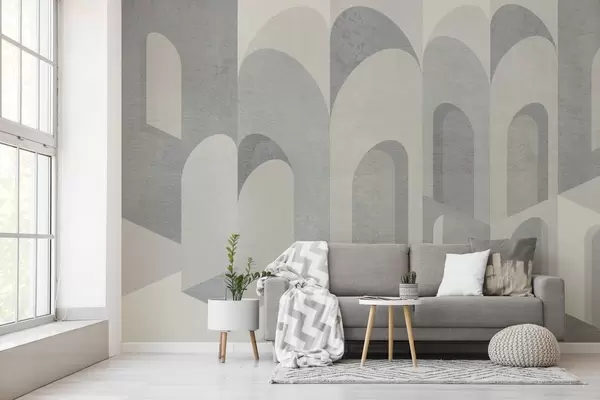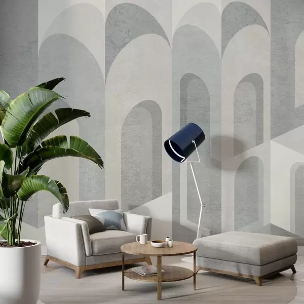 Τοιχογραφίες αστικές μεταμορφώσεις της αψίδας σε γκρι και δροσερούς μπεζ τόνους Nr. w04812v1