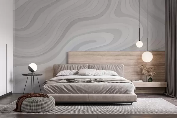 Τοιχογραφίες αφηρημένα κύματα σε αποχρώσεις του γκρι Nr. w04813v1