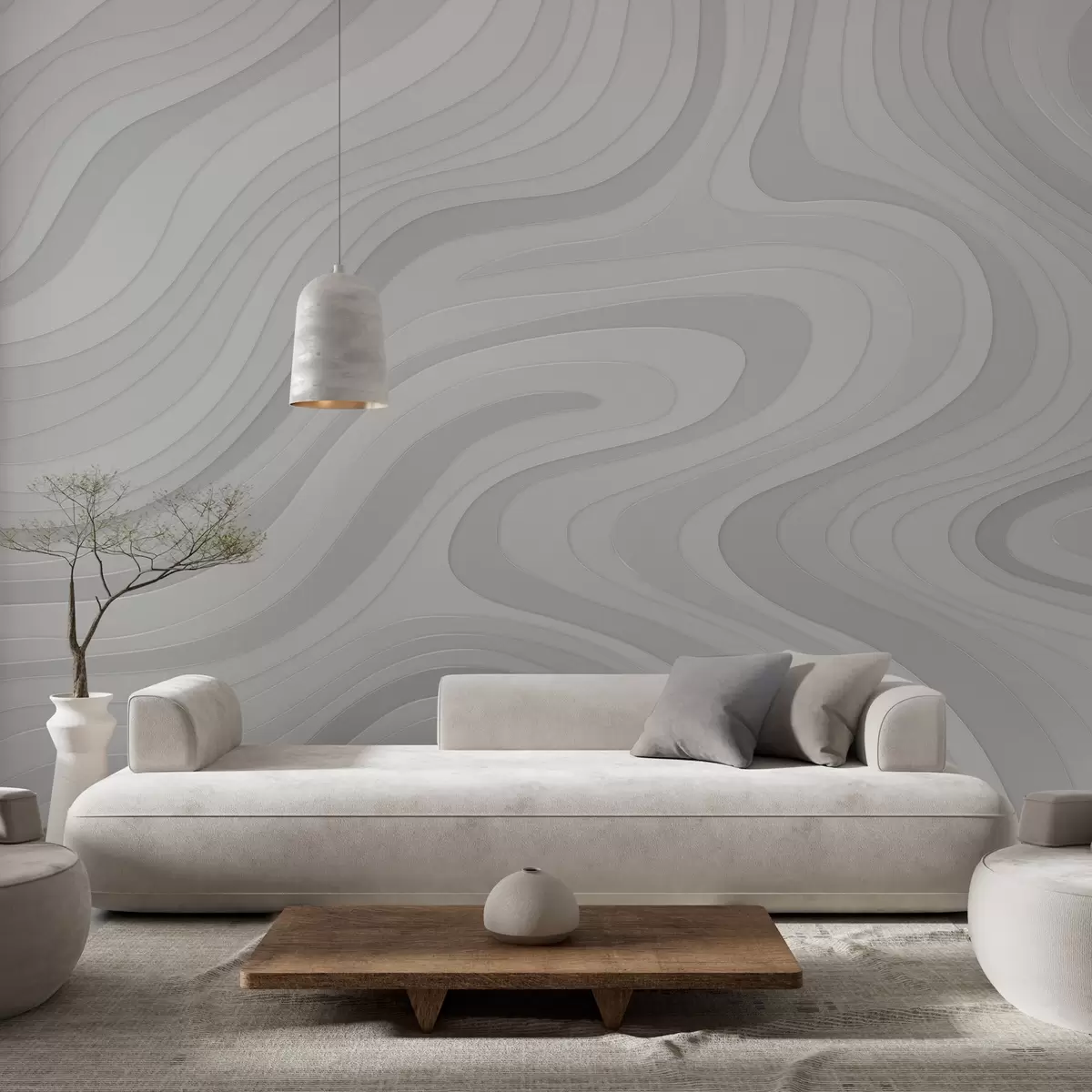 Τοιχογραφίες αφηρημένα κύματα σε αποχρώσεις του γκρι Nr. w04813v1