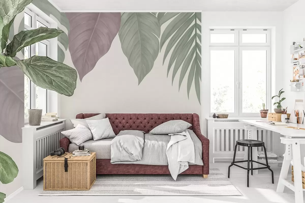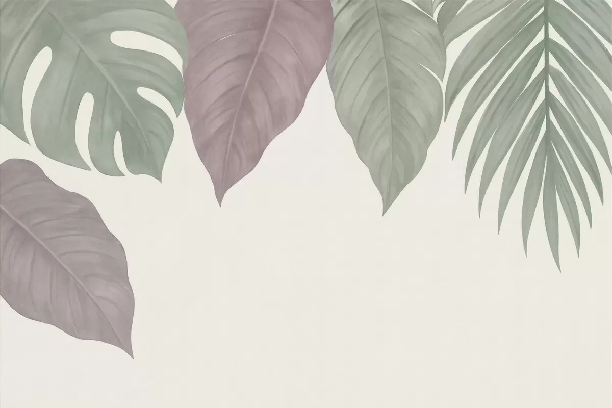 Τοιχογραφίες μεγάλα τροπικά φύλλα σε απλό στυλ, από ψηλά Nr. w04819