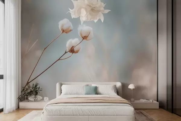 Τοιχογραφίες τρία βαμβακερά λουλούδια σε θολό φόντο Nr. w04820