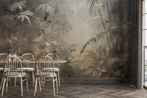Τοιχογραφίες Ζωγραφισμένη ζούγκλα πίσω από έναν γκρουγκέ τσιμεντένιο τοίχο Nr. w04833