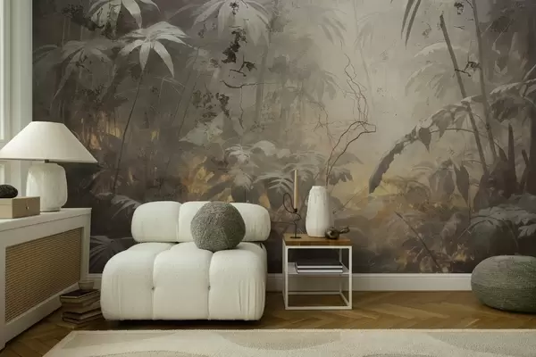 Τοιχογραφίες Ζωγραφισμένη ζούγκλα πίσω από έναν γκρουγκέ τσιμεντένιο τοίχο Nr. w04833