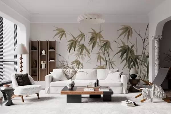 Τοιχογραφίες Μπαμπού σε φόντο με ελαφριά ακουαρέλα Nr. w04834v1