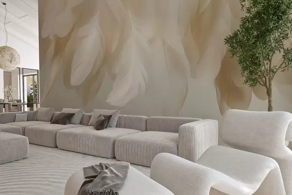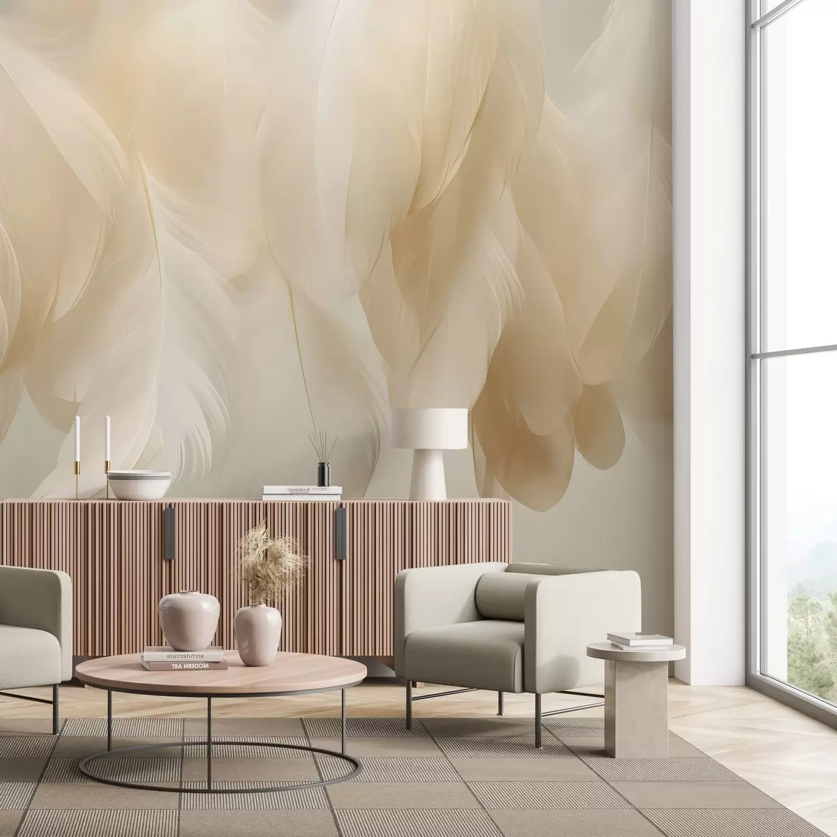 Τοιχογραφίες Πλούσια και λεπτεπίλεπτα κρεμαστά φτερά σε χαλαρωτικούς τόνους Nr. w04842