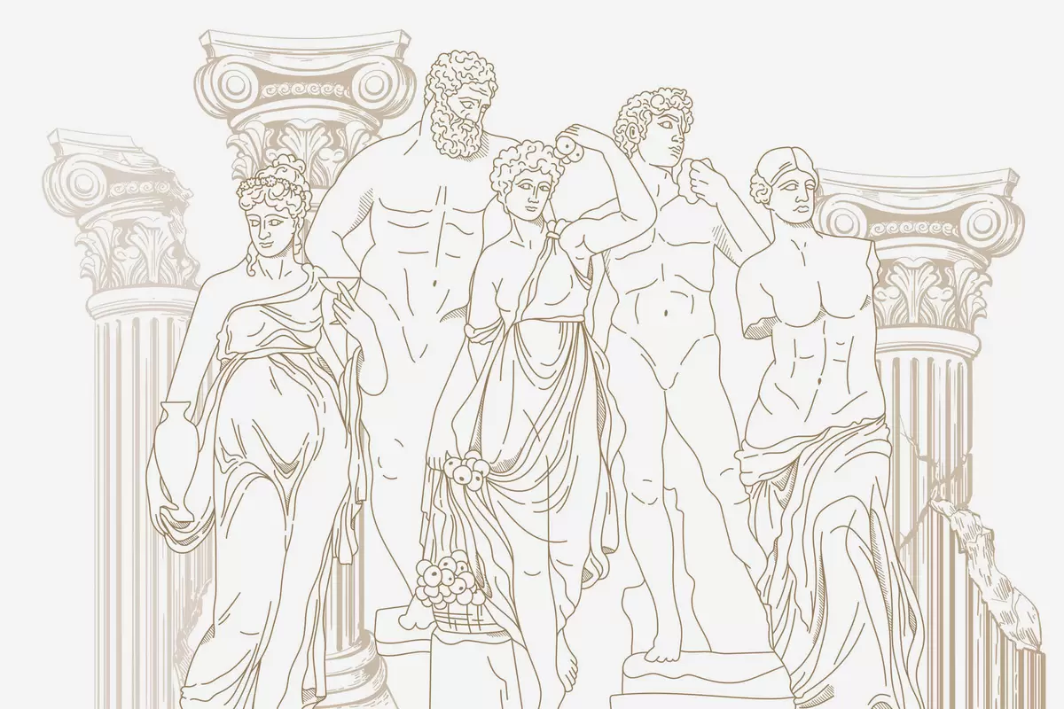 Τοιχογραφίες Αρχαίοι άνθρωποι και κολόνες Nr. w04865v1