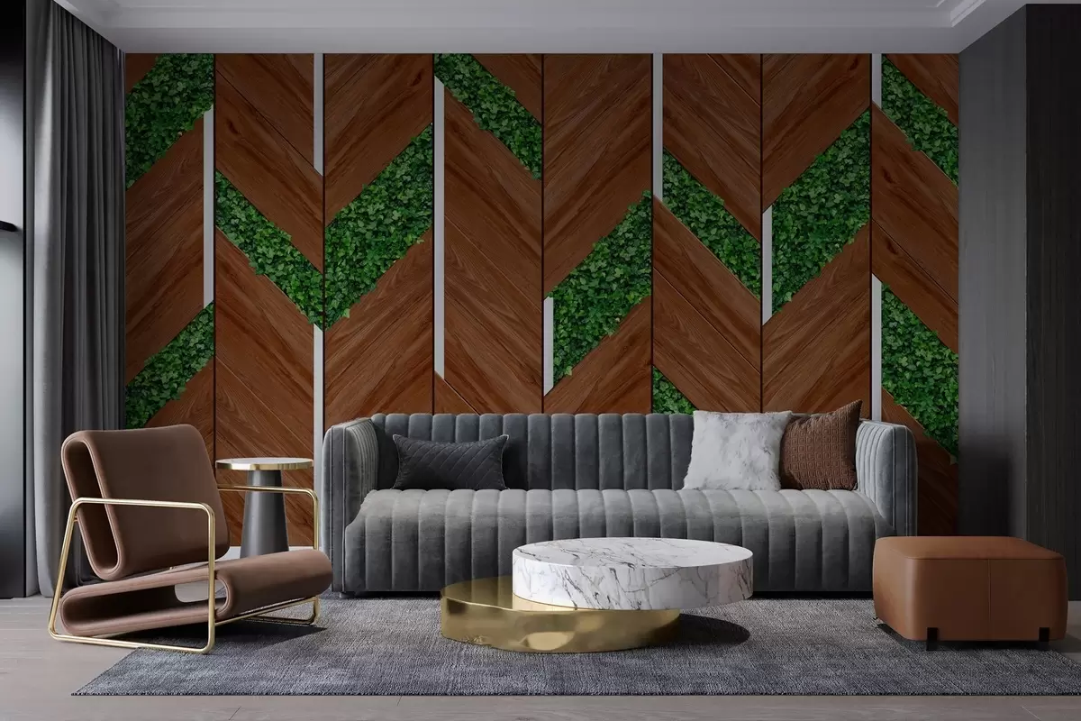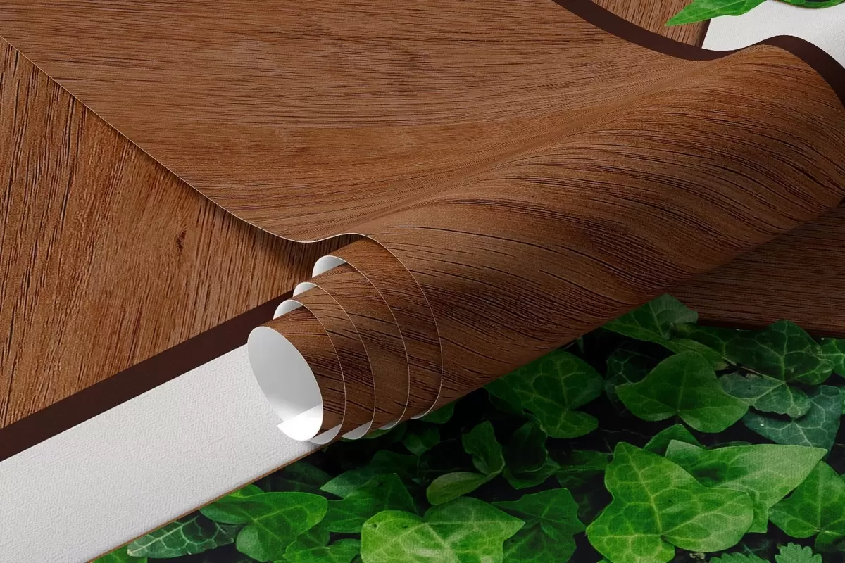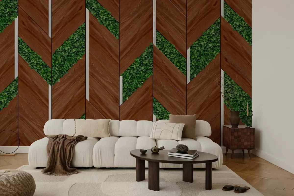 Τοιχογραφίες απομίμηση σκούρων ξύλινων πάνελ με φυτικά ένθετα Nr. w04875v1