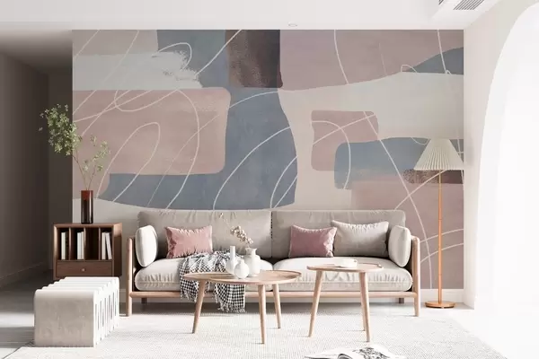 Τοιχογραφίες σύγχρονη αφαίρεση σε αποχρώσεις του ροζ, του γκρι-μπλε, του μπεζ και του καφέ Nr. w04877