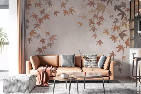 Τοιχογραφίες πολύχρωμα φύλλα κισσού που πέφτουν από ψηλά σε στυλ ελαιογραφίας Nr. w04878