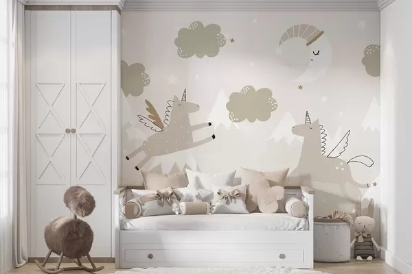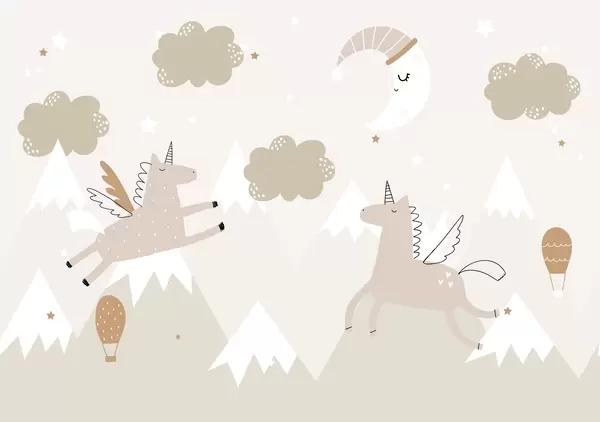 Τοιχογραφίες Κοιμωμένη Σελήνη, μονόκεροι και μπαλόνια Nr. w04886