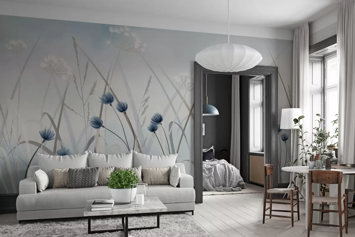Τοιχογραφίες Ζωγραφισμένο γρασίδι και λουλούδια Nr. w04900