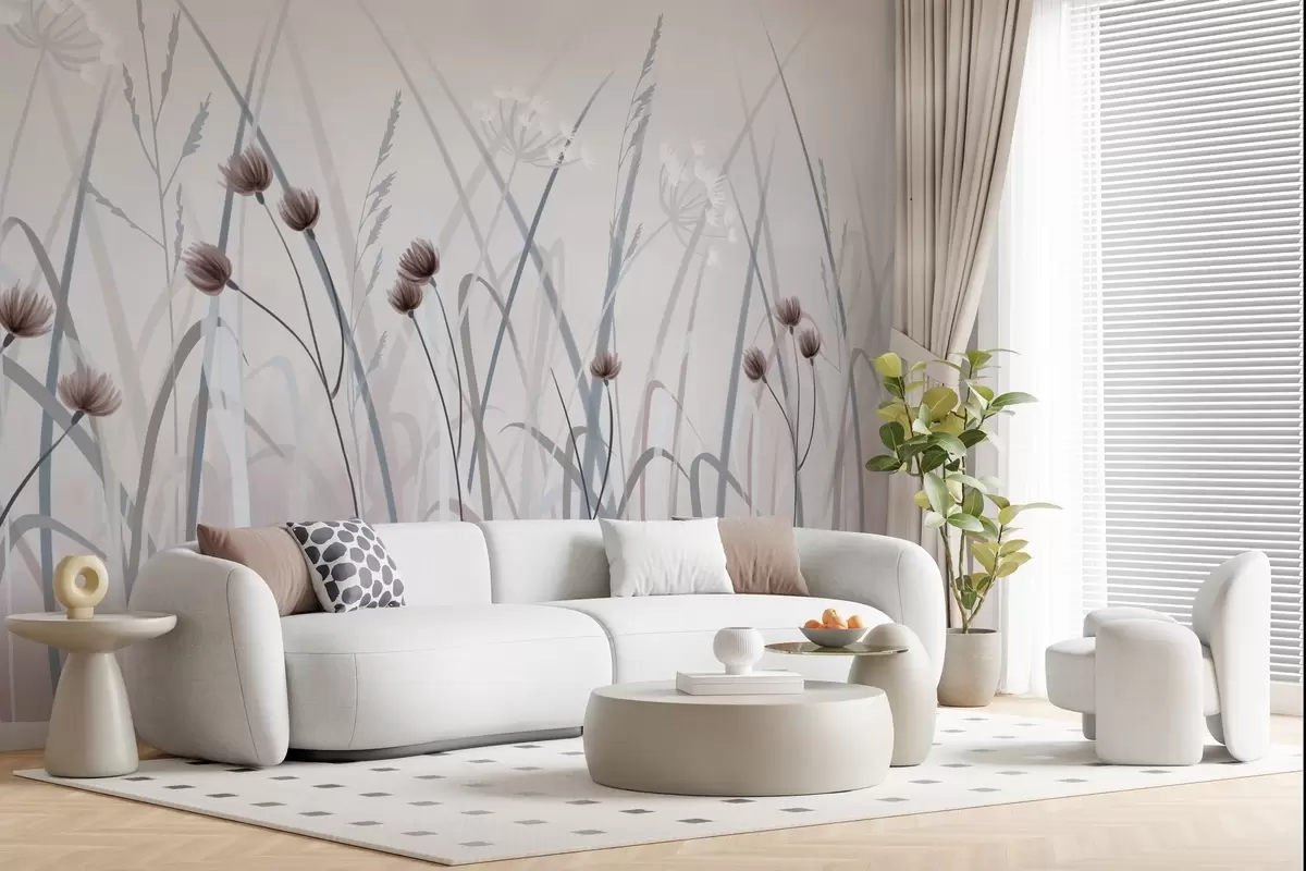 Τοιχογραφίες Ζωγραφισμένο γρασίδι και λουλούδια Nr. w04900v1