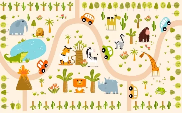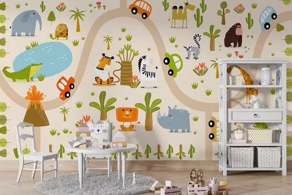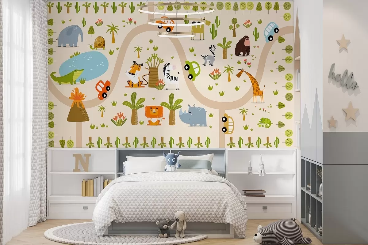 Τοιχογραφίες Σαφάρι με ζώα και αυτοκίνητα Nr. w04931