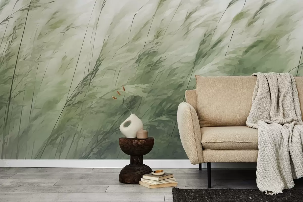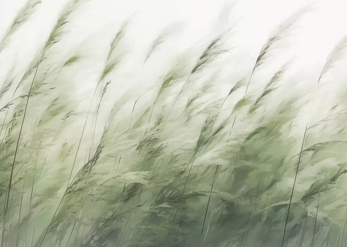 Τοιχογραφίες Ελαφριά χόρτα στον άνεμο, απαλές πράσινες και λευκές πινελιές Nr. w04957