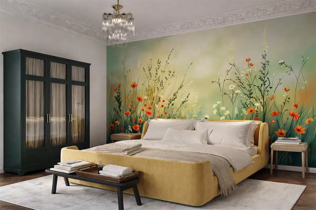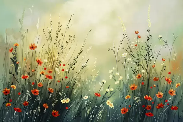 Τοιχογραφίες Λουλούδια και χόρτα του λιβαδιού σε απαλό ζωγραφικό στυλ Nr. w05015