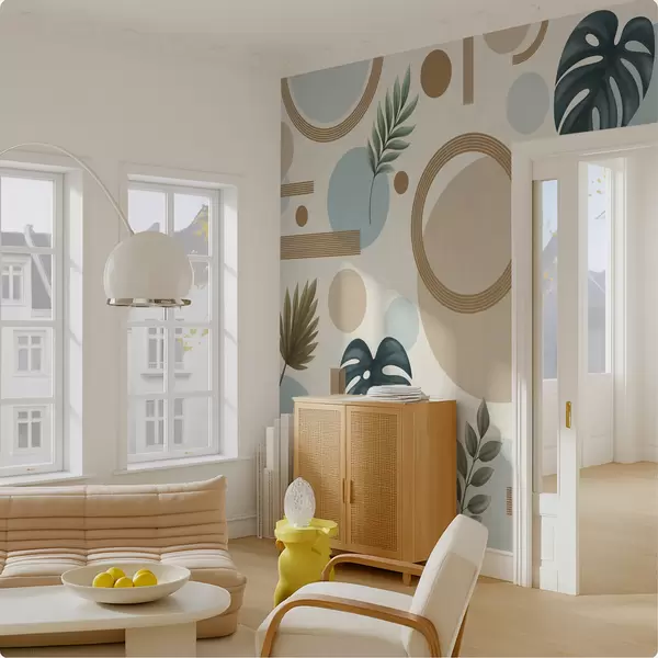 Τοιχογραφίες Γεωμετρικό μοτίβο με φύλλα και κύκλους σε ήρεμους τόνους Nr. w05018