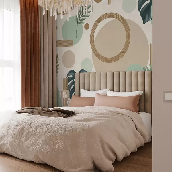 Τοιχογραφίες Γεωμετρικό μοτίβο με φύλλα σε πράσινη παλέτα Nr. w05018v1