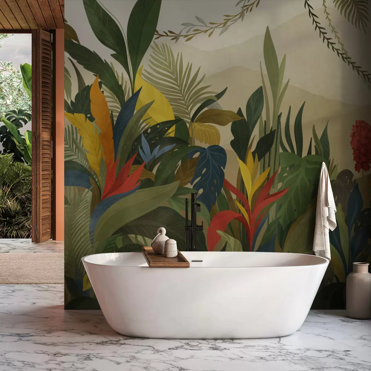 Τοιχογραφίες Τροπικό φύλλωμα με μεγάλα φύλλα και λουλούδια Nr. w05019