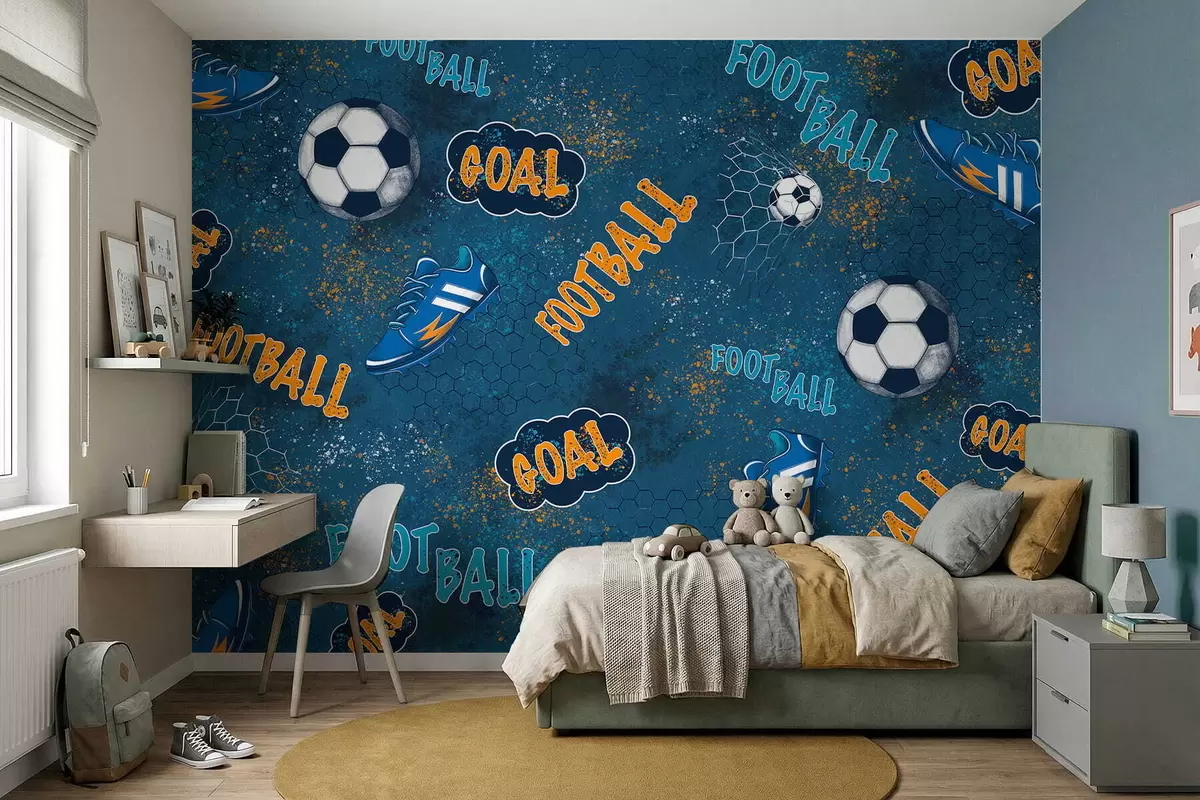 Τοιχογραφίες Παιδικό μοτίβο με μπάλες, παπούτσια και αθλητικές λέξεις Nr. w05037