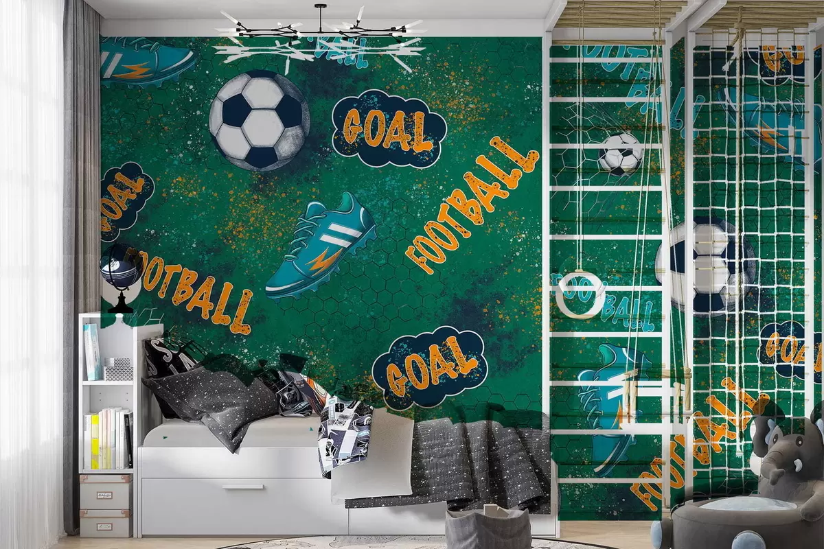 Τοιχογραφίες Παιδικό ποδοσφαιρικό μοτίβο σε πράσινους τόνους Nr. w05037v1