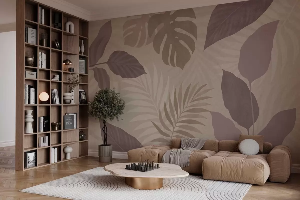 τοιχογραφίες υφή τροπικών φύλλων σε αμμώδες φόντο w05063