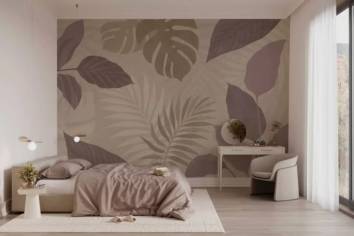 Τοιχογραφίες υφή τροπικών φύλλων σε αμμώδες φόντο Nr. w05063