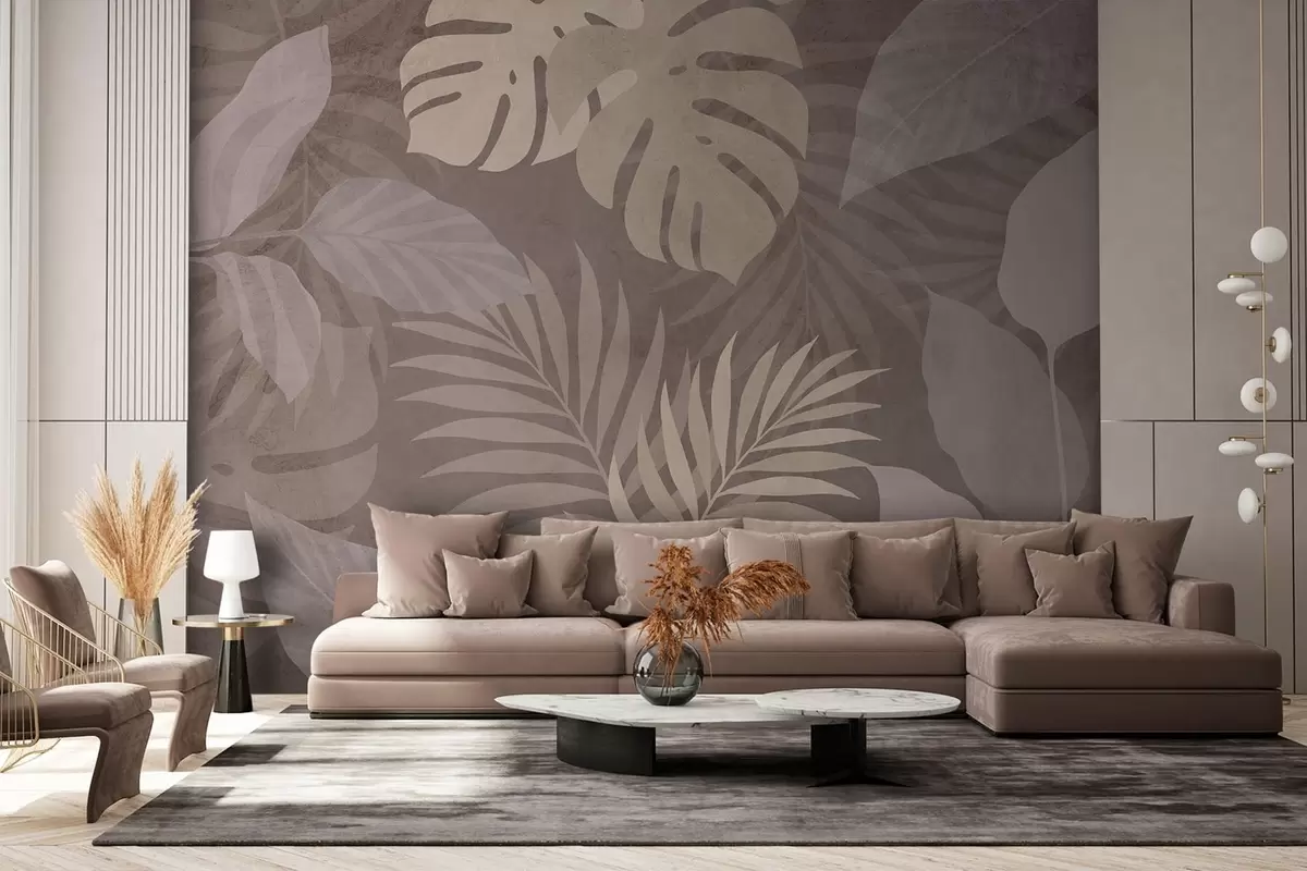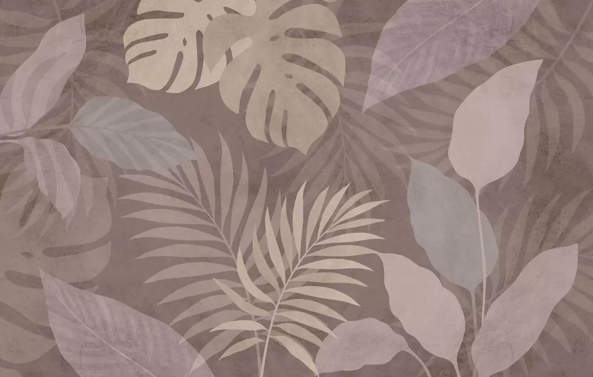 Τοιχογραφίες υφή τροπικών φύλλων σε φόντο σοκολάτας Nr. w05063v2