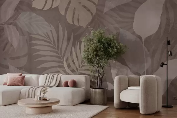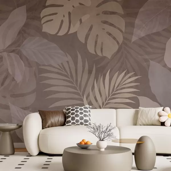 Τοιχογραφίες υφή τροπικών φύλλων σε φόντο σοκολάτας Nr. w05063v2