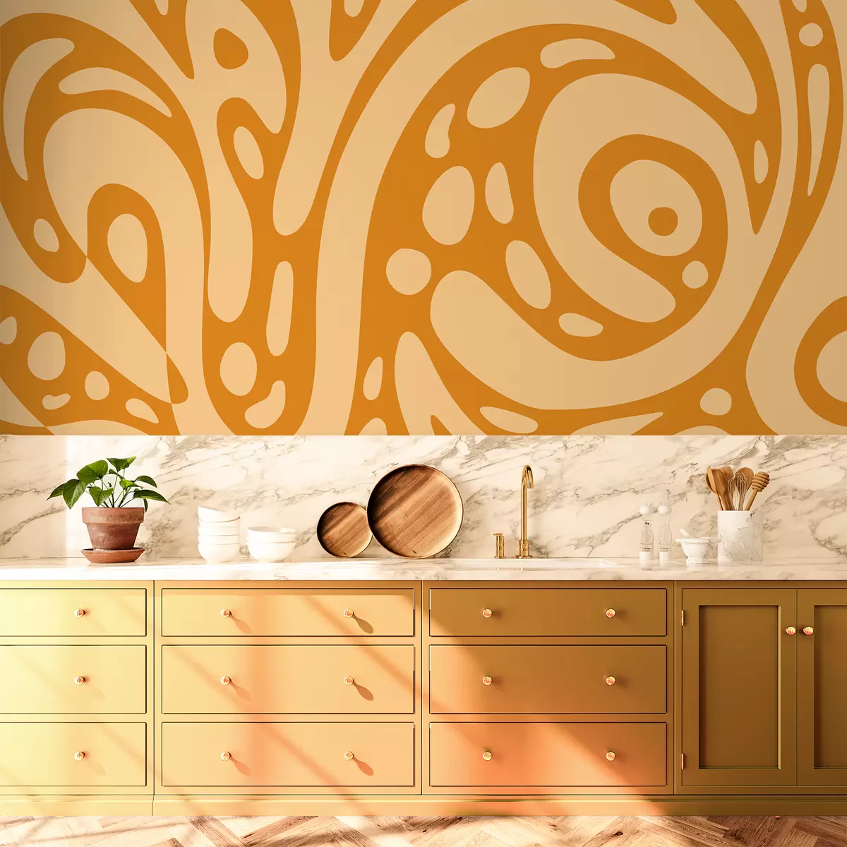 Τοιχογραφίες Αφηρημένο μοτίβο με ζεστά σχήματα σε χρώμα ώχρας Nr. w05071v1