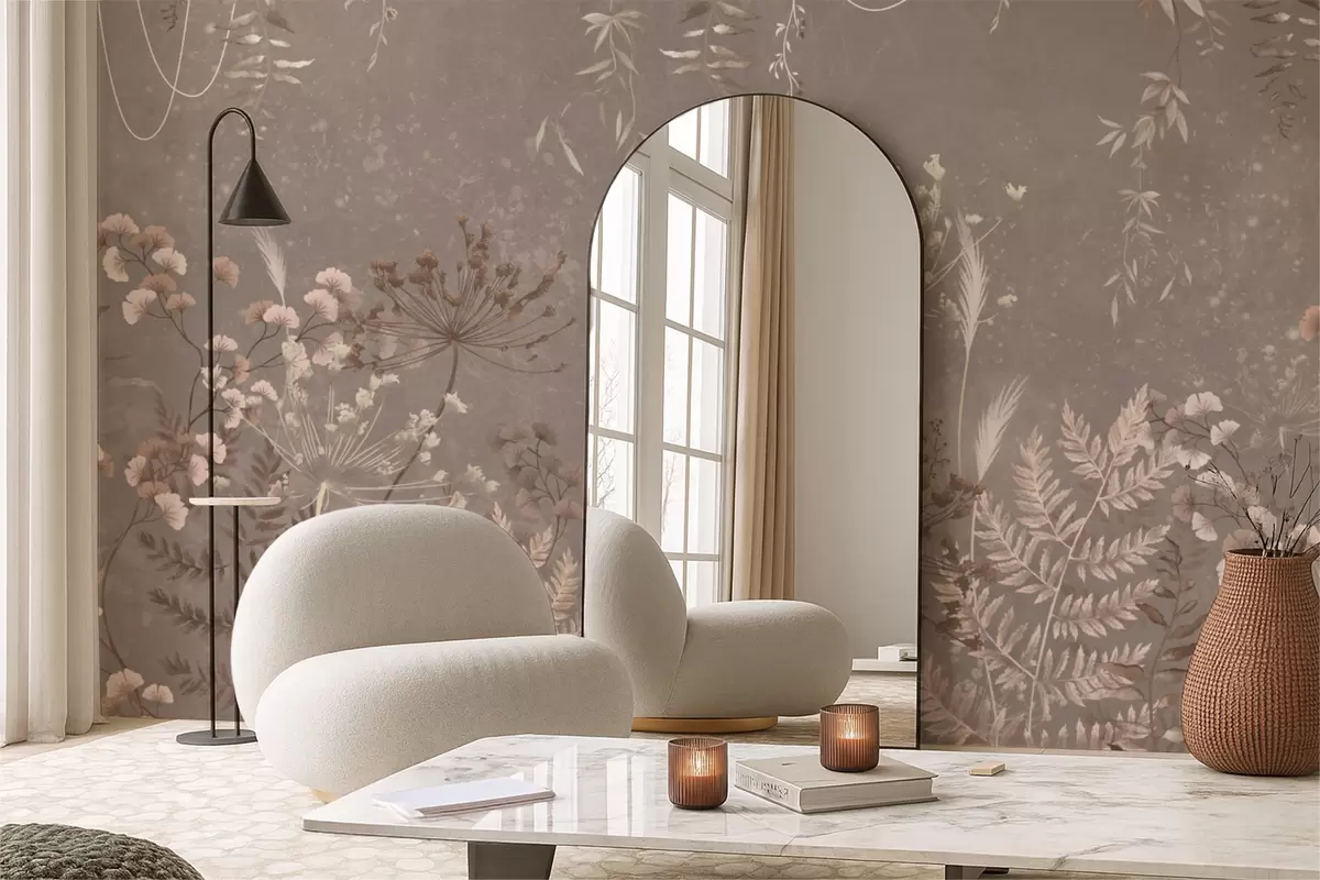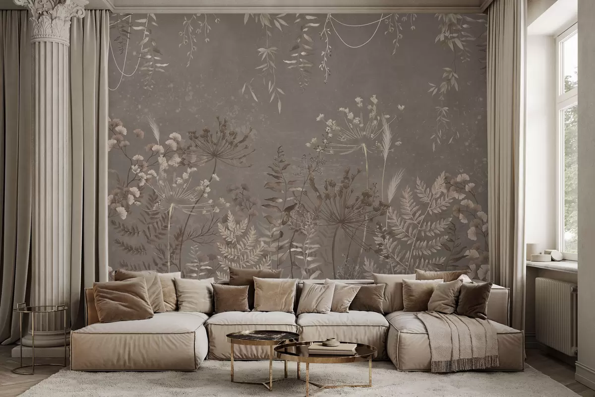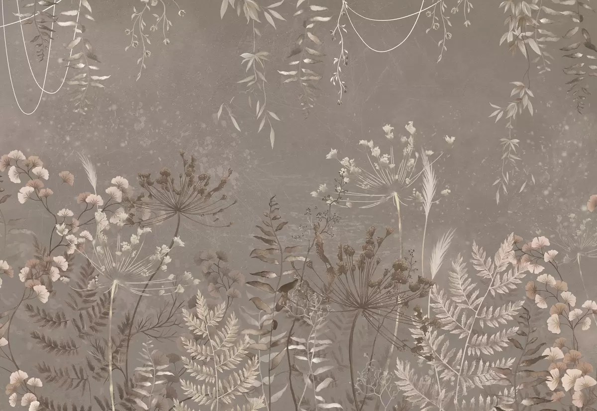 Τοιχογραφίες Ελαφρύ βοτανικό μοτίβο με λουλούδια και φύλλα Nr. w05092v1