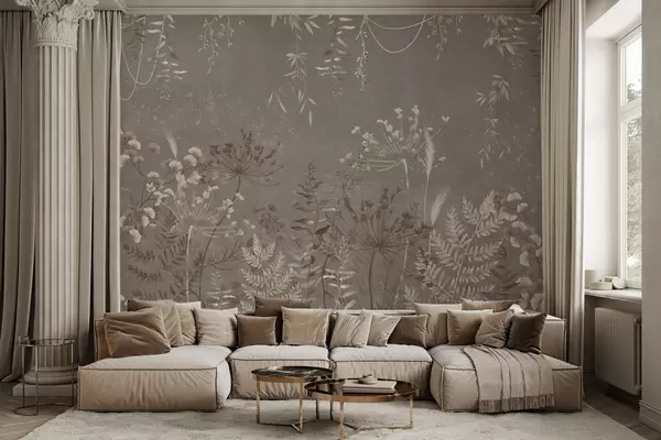 Τοιχογραφίες Ελαφρύ βοτανικό μοτίβο με λουλούδια και φύλλα Nr. w05092v1