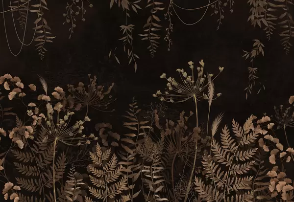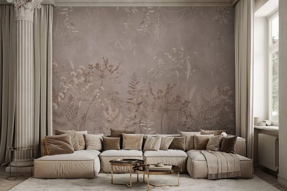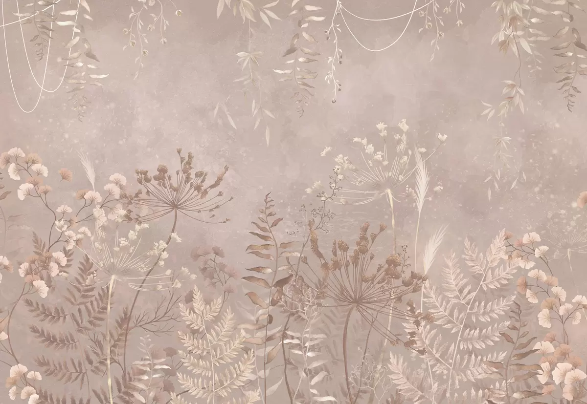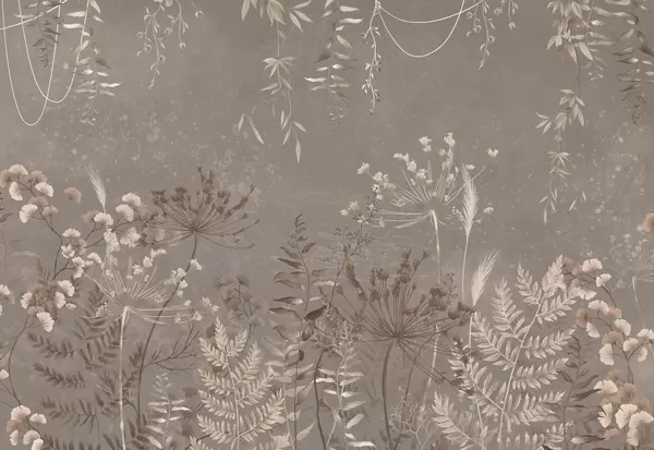 Τοιχογραφίες Απαλό μπεζ βοτανικό μοτίβο με αγριολούλουδα Nr. w05092v2