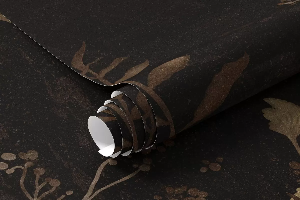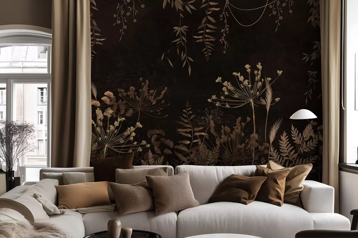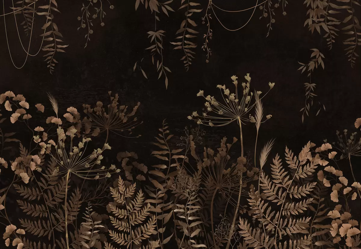 Τοιχογραφίες Σκούρο βοτανικό μοτίβο με λουλούδια και χόρτα Nr. w05092v3