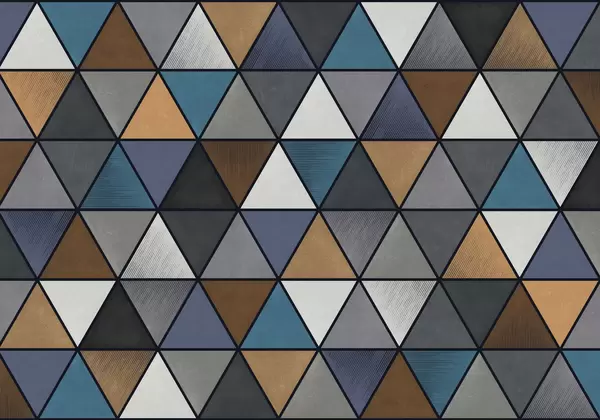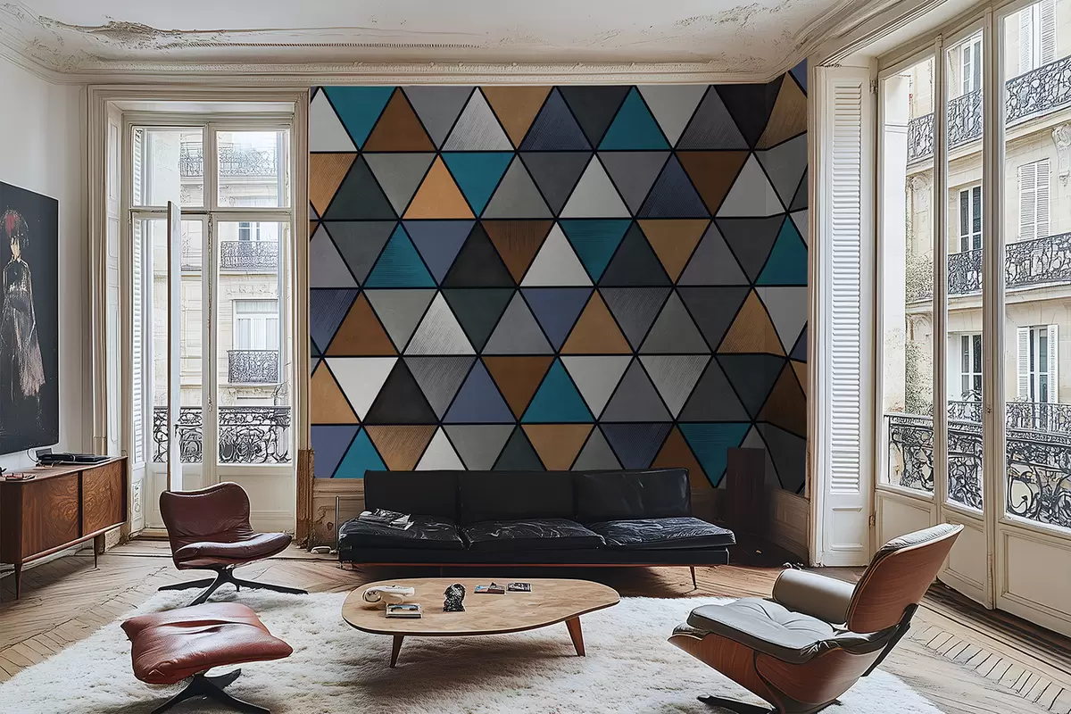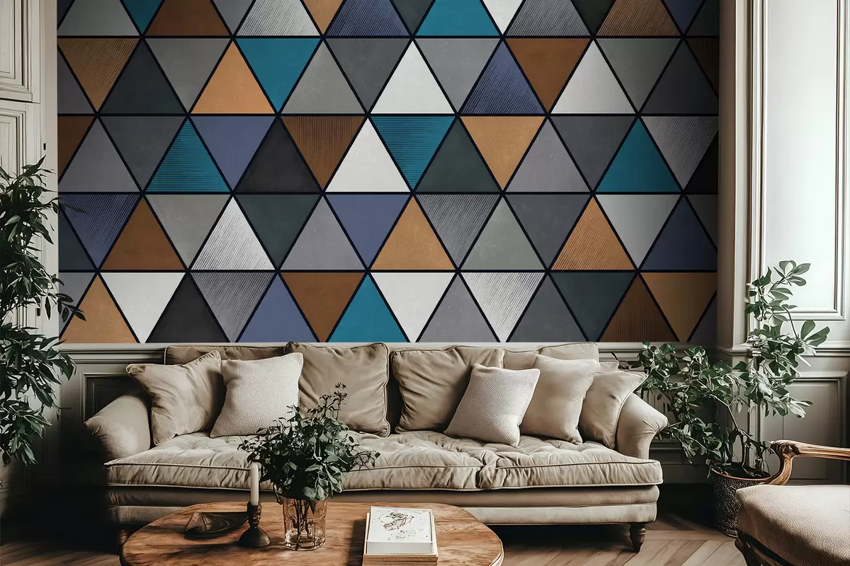 Τοιχογραφίες Τριγωνικό γεωμετρικό μοτίβο σε μπλε και ζεστούς τόνους Nr. w05095