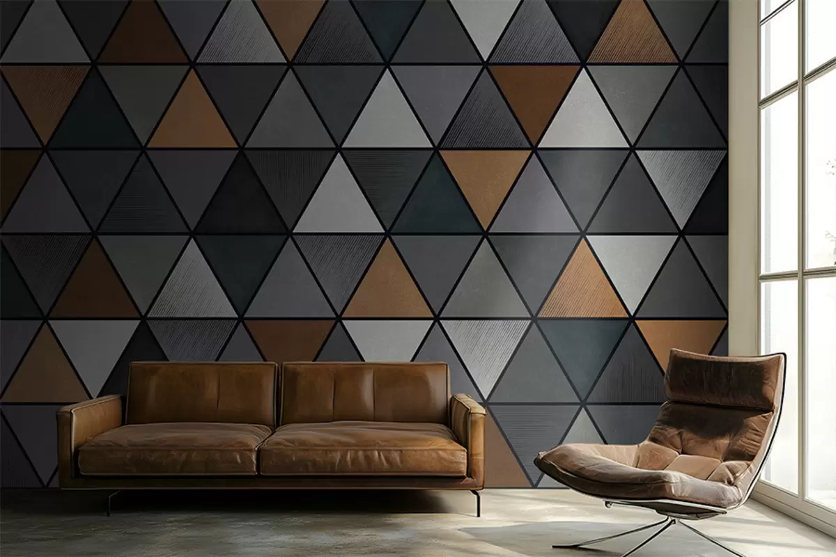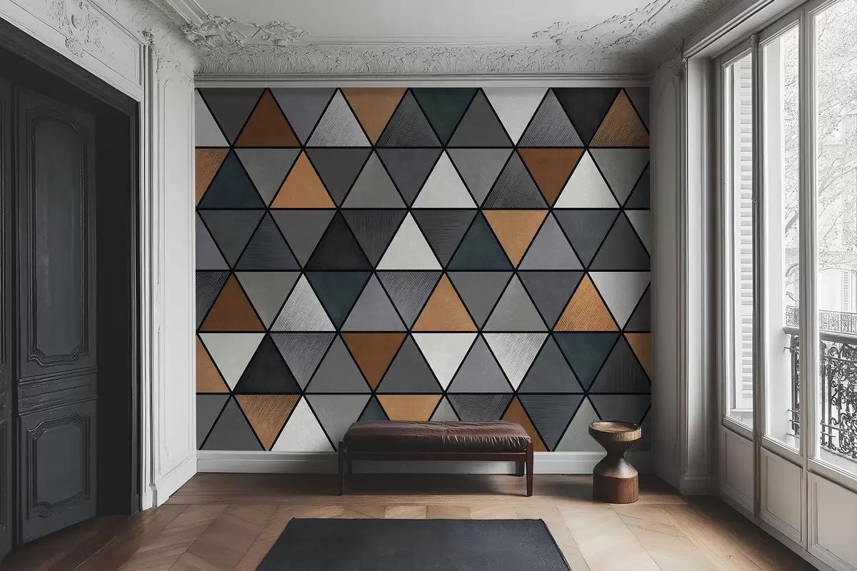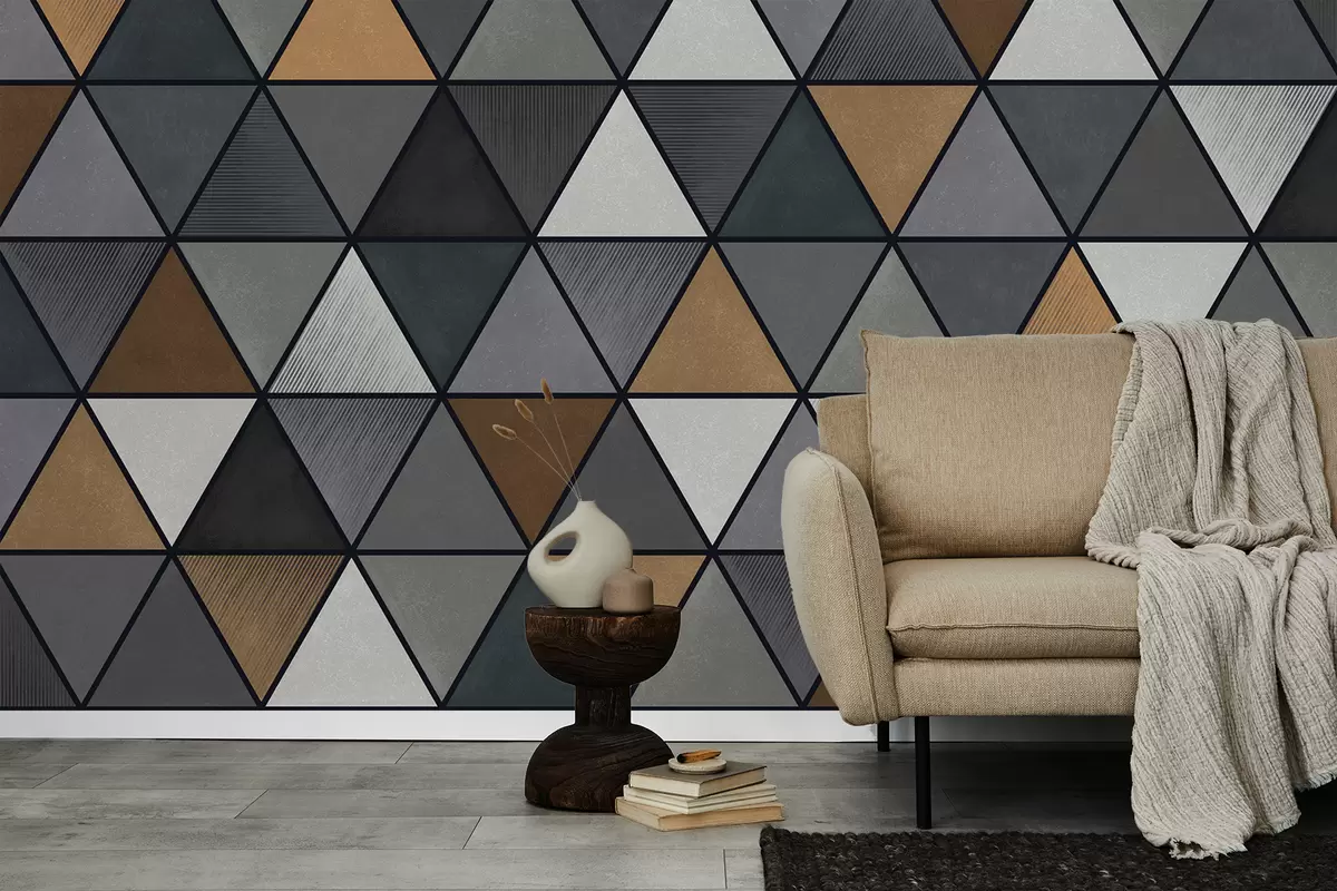Τοιχογραφίες Τριγωνικό μοτίβο με γκρι και ζεστές αποχρώσεις Nr. w05095v1