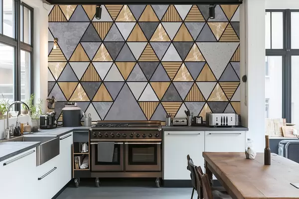 Τοιχογραφίες Τριγωνικό στολίδι με ουδέτερα και ζεστά χρώματα Nr. w05096v1