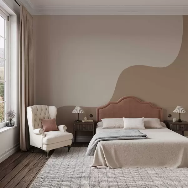 Τοιχογραφίες Απαλά αφηρημένα σχήματα σε ανοιχτούς μπεζ και καφέ τόνους Nr. w05097v2