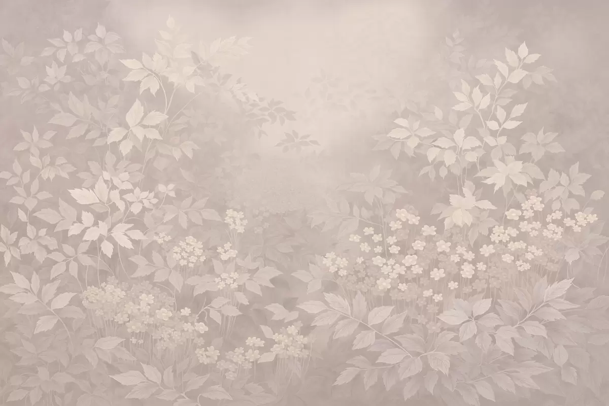 Τοιχογραφίες Ελαφρύ βοτανικό στολίδι με φύλλα και μικρά λουλούδια Nr. w05115