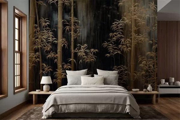 Τοιχογραφίες Σκούρο μπαμπού σε μαύρο φόντο Nr. w05120