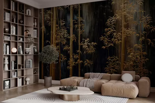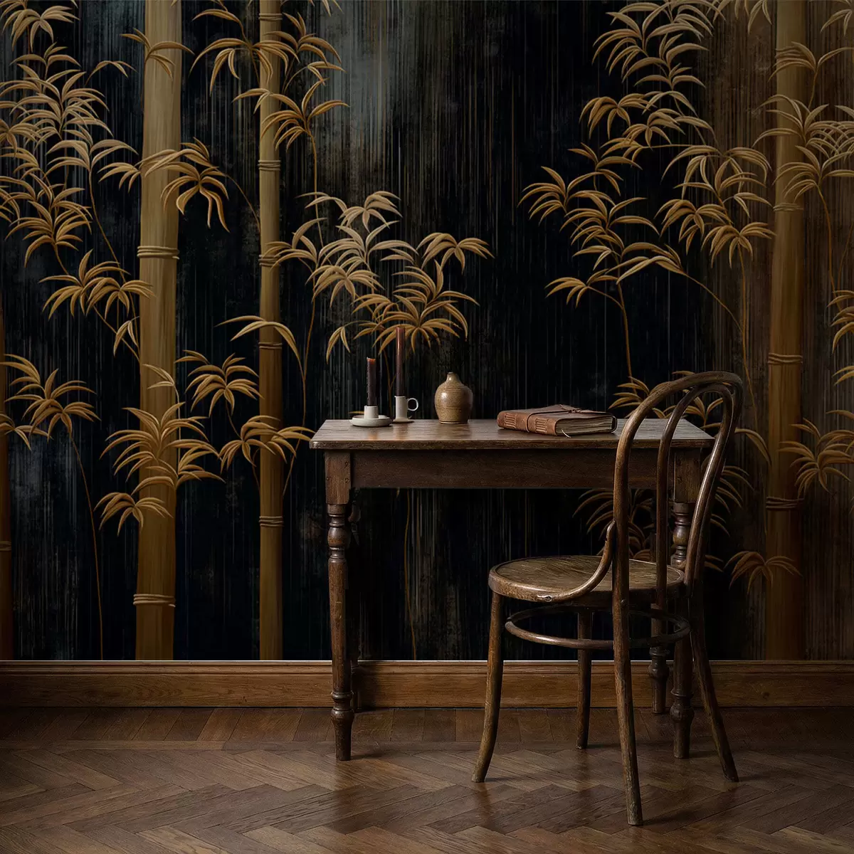 Τοιχογραφίες Σκούρο μπαμπού σε μαύρο φόντο Nr. w05120