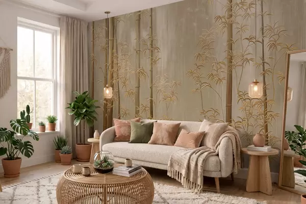 Τοιχογραφίες Μπεζ μπαμπού με λεπτούς μίσχους Nr. w05120v2