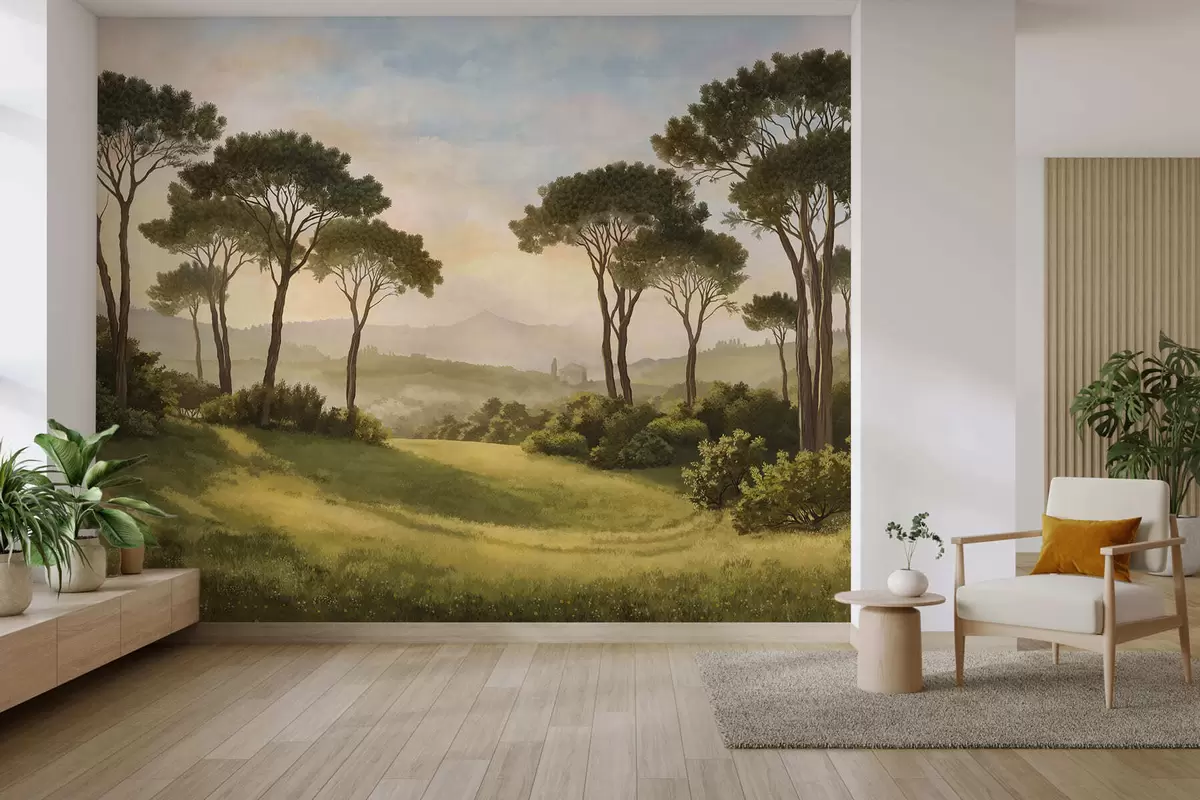 Τοιχογραφίες Τοπίο με δέντρα στο ζεστό φως του ηλιοβασιλέματος Nr. w05122