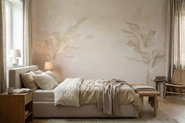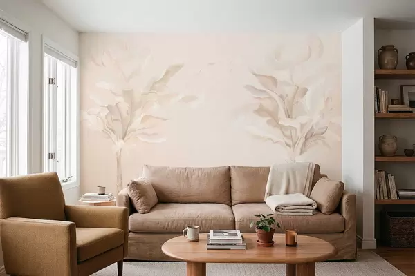 Τοιχογραφίες Αέρινα διακοσμητικά φυτά σε ζεστούς κρεμώδεις τόνους Nr. w05126