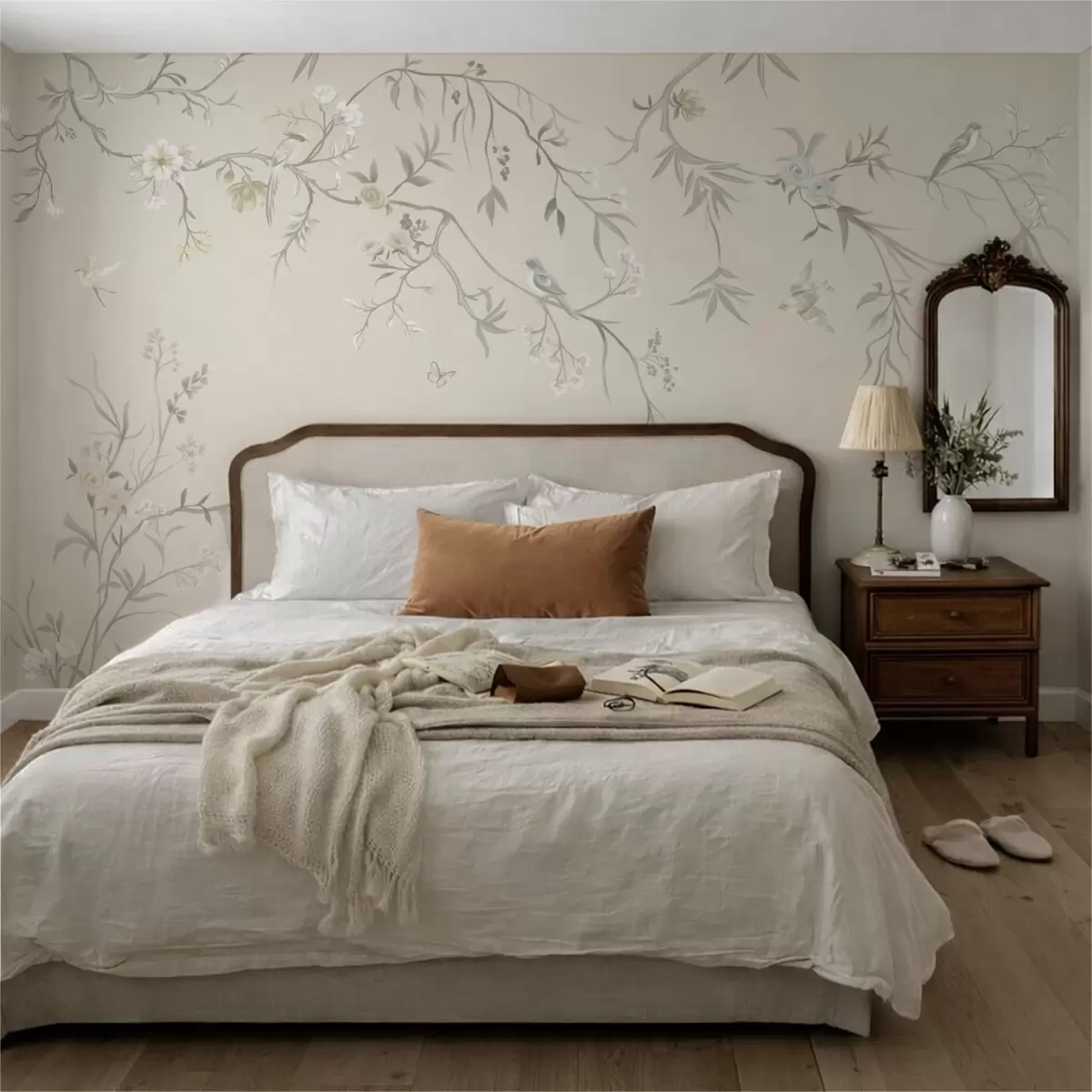 Τοιχογραφίες Ελαφριά λουλούδια και πουλιά σε παστέλ φόντο Nr. w05127v2