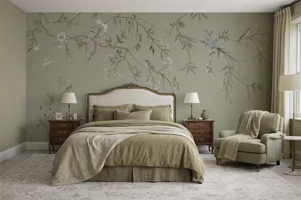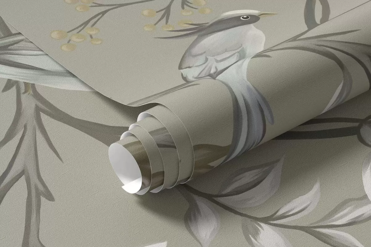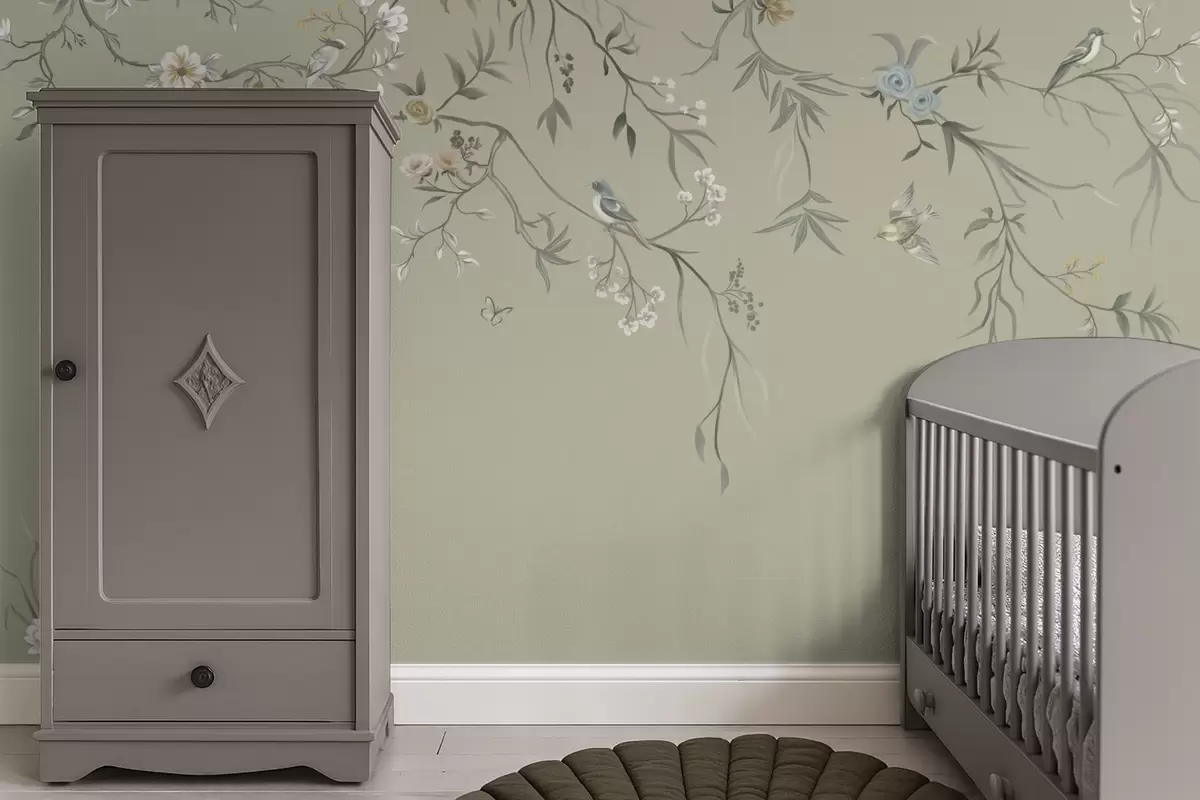 Τοιχογραφίες Λουλουδάτο μοτίβο με πουλιά σε δροσερό φόντο Nr. w05127v6
